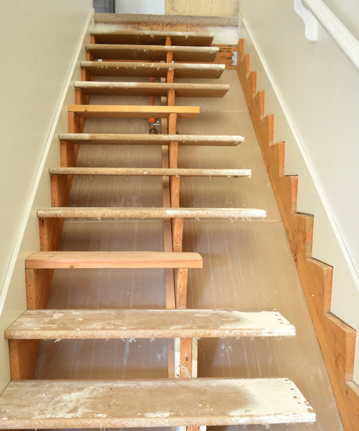 Les marches non soutenues sur leur pleine largeur par les contremarches :