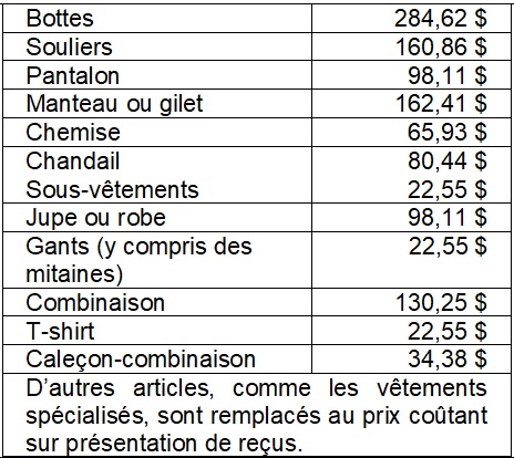 2. Travail sécuritaire NB rembourse au prix coûtant le coût des vêtements, y compris les chaussures et les gants, fournis à titre d’aide médicale.